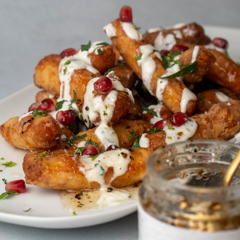 So crisp on the outside, yet so gooey on the inside, these Halloumi Fries with a Truffle punch are irresistible and will keep you saying ‘one more’ until the last crumb. The soothing minty yoghurt combined with the sweetness of our Truffle Honey and tang of the pomegranate, make this dish so wholesome and special.