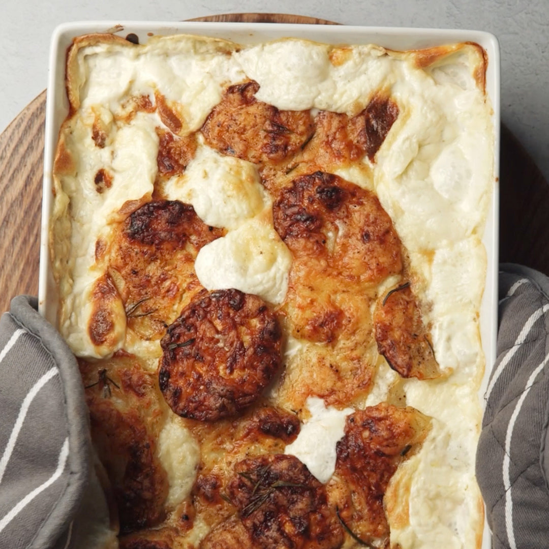 Delicious Potato Dauphinoise with Truffle Mustard & Truffle Dust