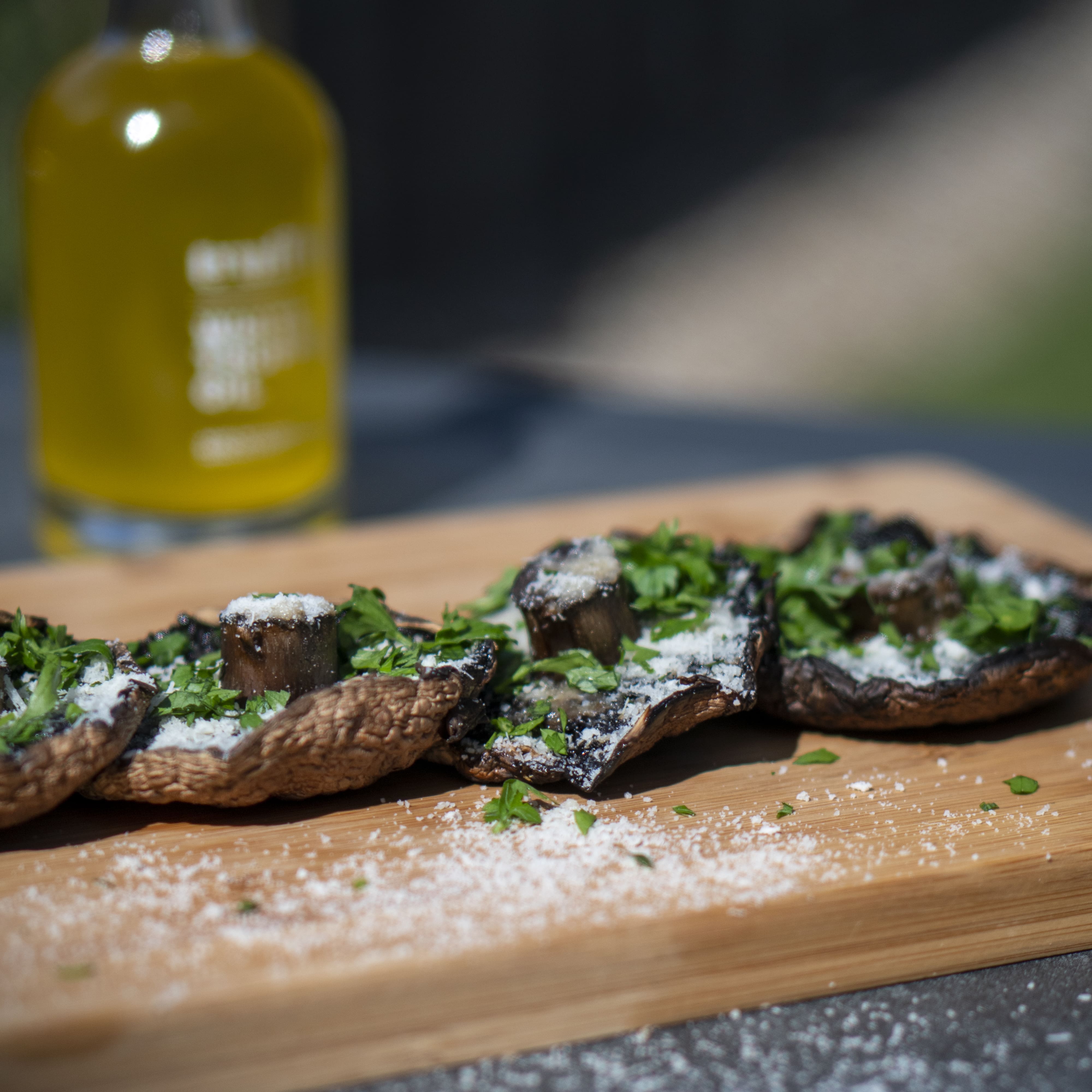 - To prep your Mushrooms, you need to add a drizzle of White Truffle Oil into the cup of each of the Mushrooms before then adding a pinch of salt, a generous amount of finely grated parmesan cheese before then shaking the Signature Truffle Dust over each of the Mushrooms