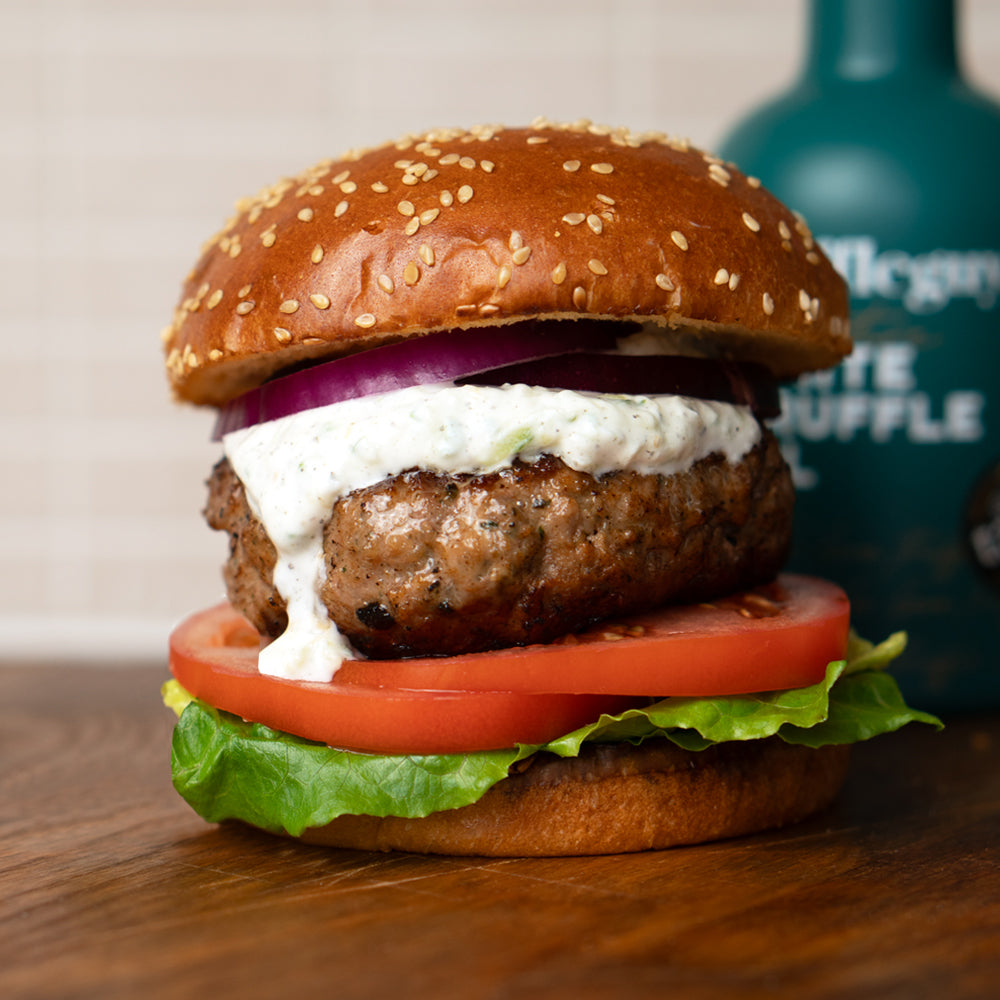 Truffle Lamb Burger With Truffle Tzatziki & Feta
