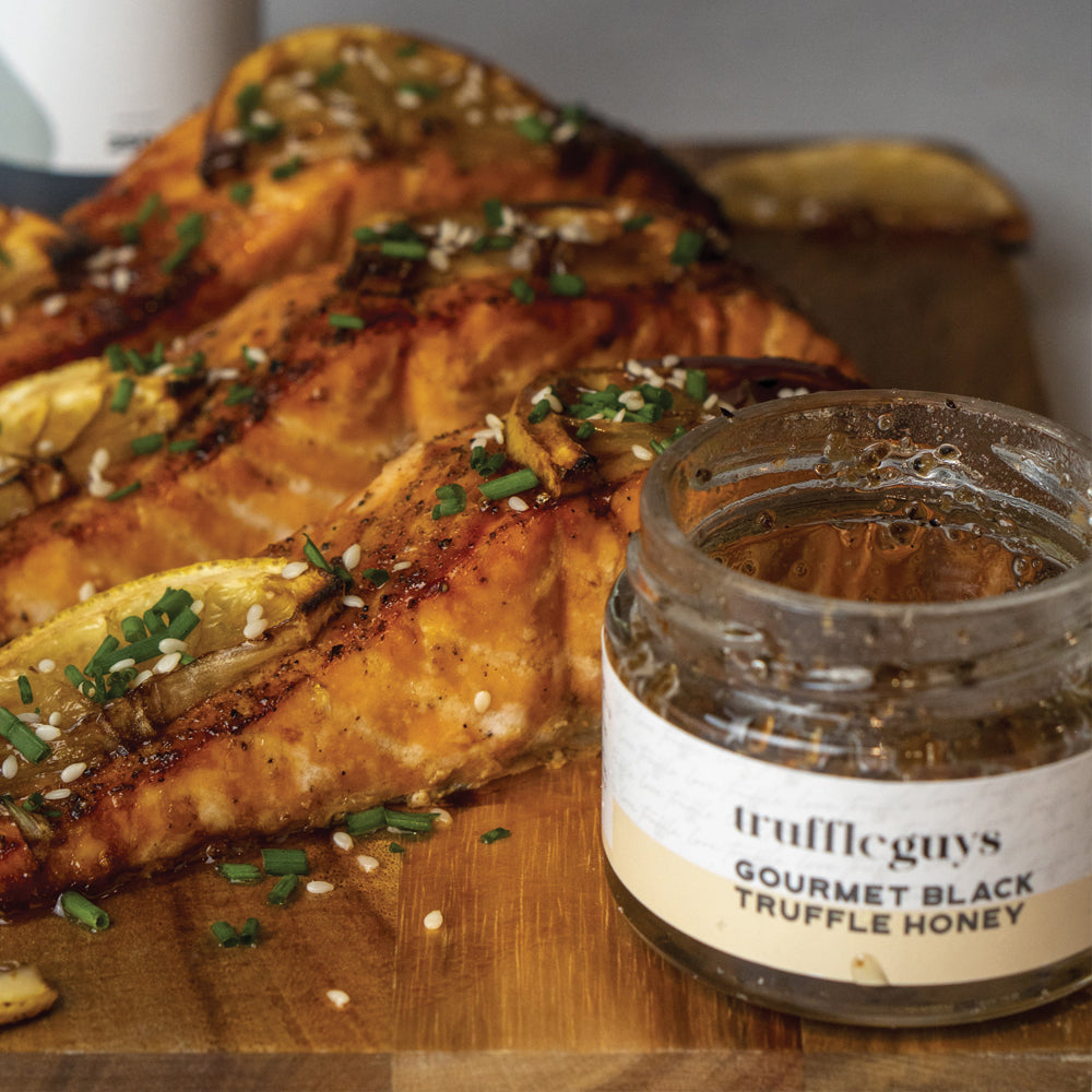 Ladies & Gentleman, we welcome to the plate, the undisputed tag-team champions of the world, the Truffle Duo that is Gourmet Truffle Honey & Seriously Good Truffle Balsamic Glaze. So simple, yet so seductive and interesting this tantalising take on a simple baked salmon fillet can be your ‘go-to’ midweek meal or a special weekend treat.