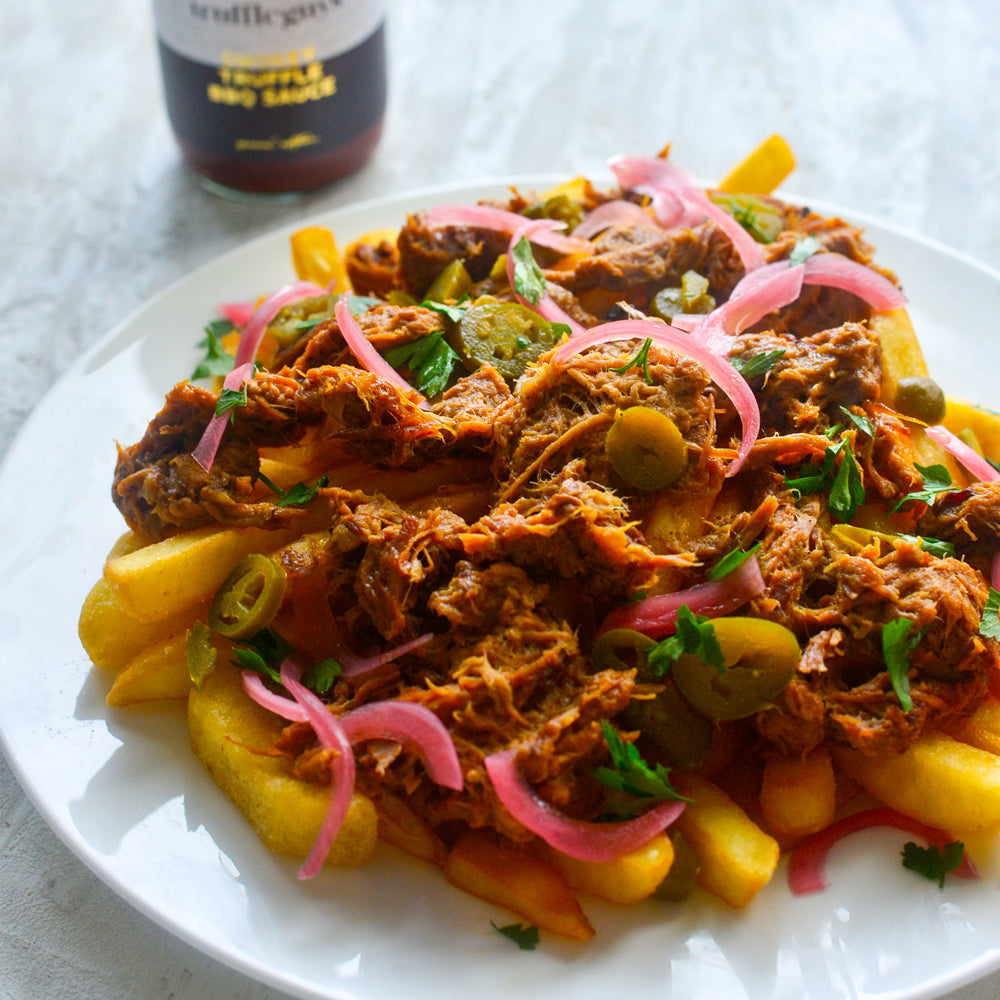 Pulled pork, truffle, AND loaded fries? 😍🔥 This plate of Truffle BBQ Pulled Pork Loaded Fries is next level comfort food 🤯 View Recipe Videos
