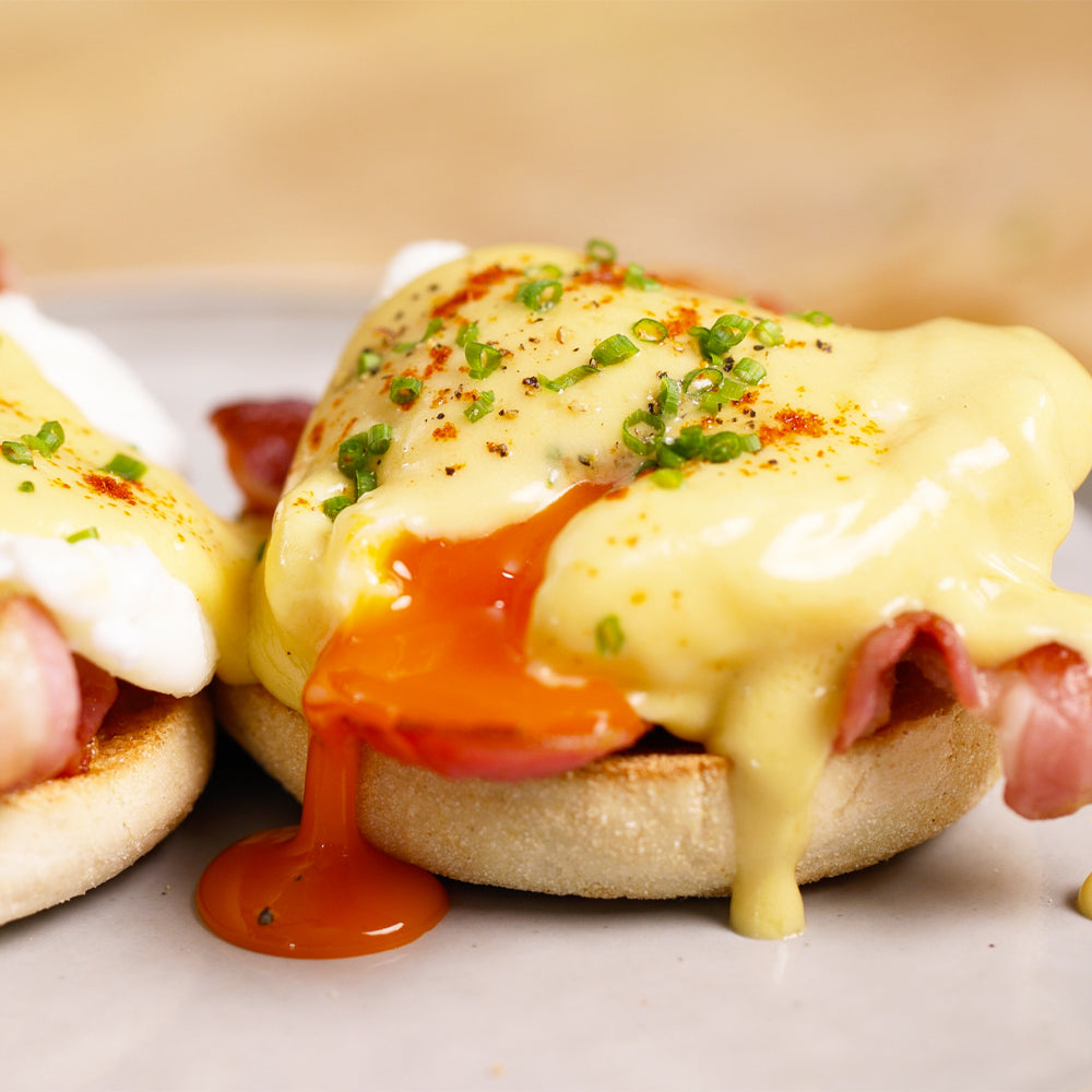 Experience breakfast decadence with our Truffle Eggs Benedict. Delight in perfectly poached eggs, perched atop fluffy English muffins, and crowned with a velvety hollandaise sauce infused with the exquisite essence of truffles. Each bite is a luxurious symphony of flavours, where the creamy yolk, buttery muffin, and the earthy truffle notes dance in perfect harmony. View Recipe Videos