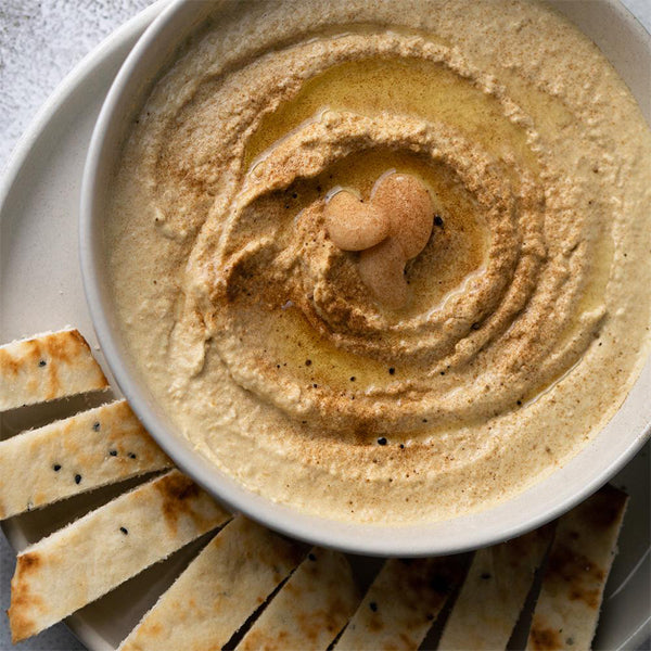- Add lemon juice, olive oil, Cayenne pepper and salt and purée with a hand-held blender.